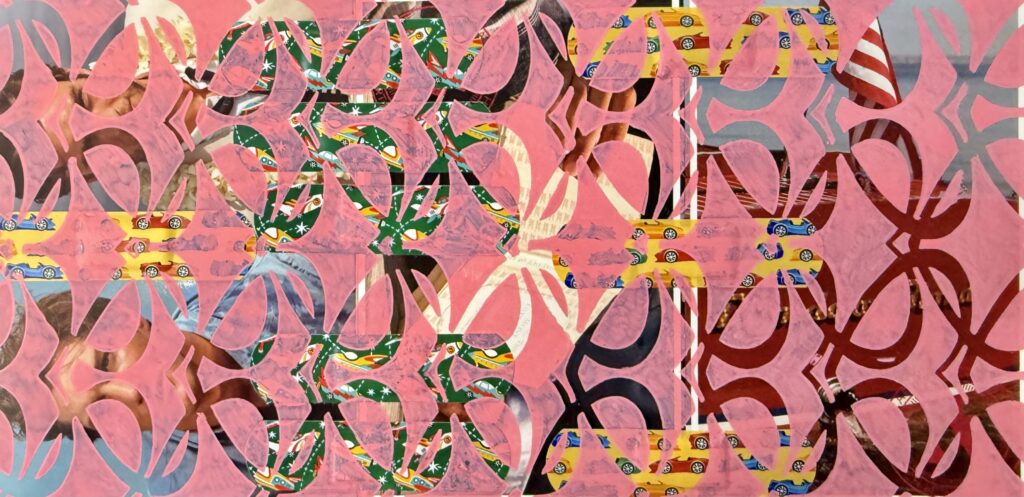 Vera Fonseka – Sim — a obra Entre fragmentos, criada em 2024, foi um ponto de viragem. É composta por uma tela de grandes dimensões e um livro de artista, e marcou o momento em que comecei a aprofundar a colagem como linguagem central no meu trabalho. A relação entre a pintura e a origem dos fragmentos passou a ganhar uma importância maior: comecei a interrogar de onde vinham as imagens, os restos, os papéis que escolhia colar — e porquê. Foi também nesta obra que o rosa começou a surgir, como uma cor carregada de memória e ambiguidade identitária. Desde então, o meu processo tem vindo a ganhar outra profundidade — mais atento, mais consciente, mais meu. Acho que passei a observar mais o meu próprio processo, não sei explicar isso ainda…
