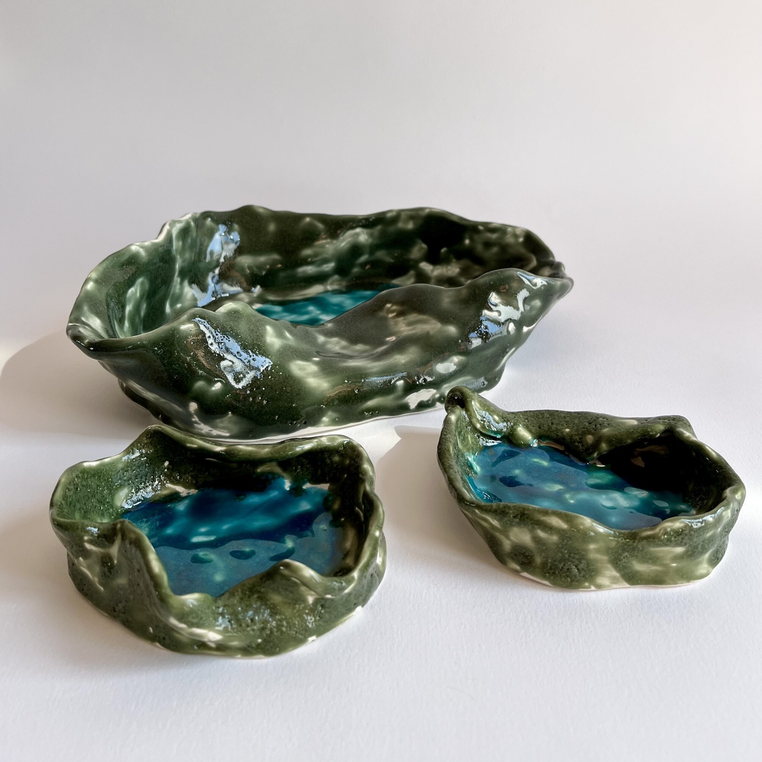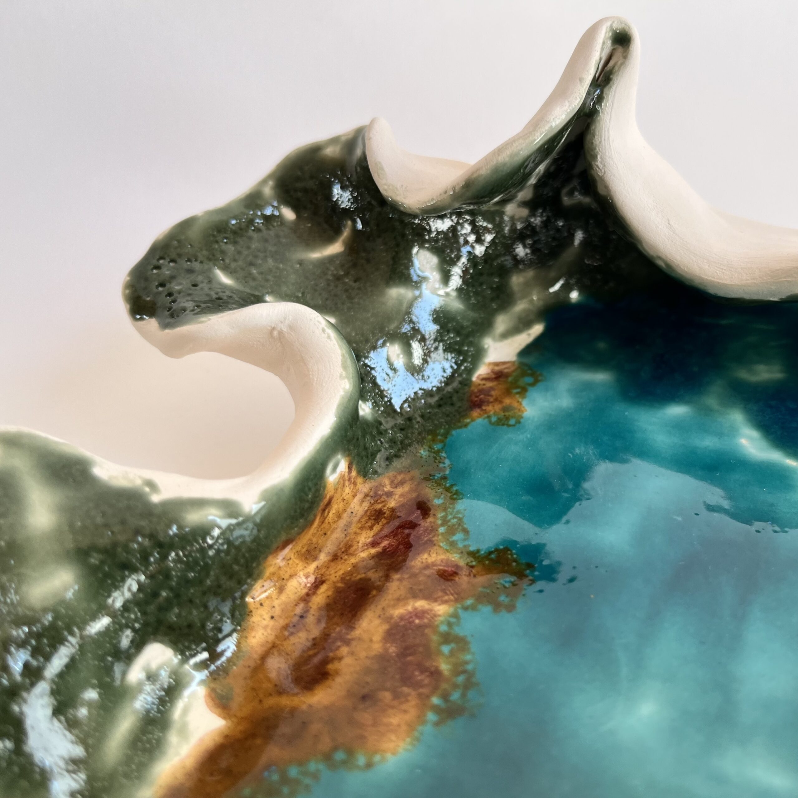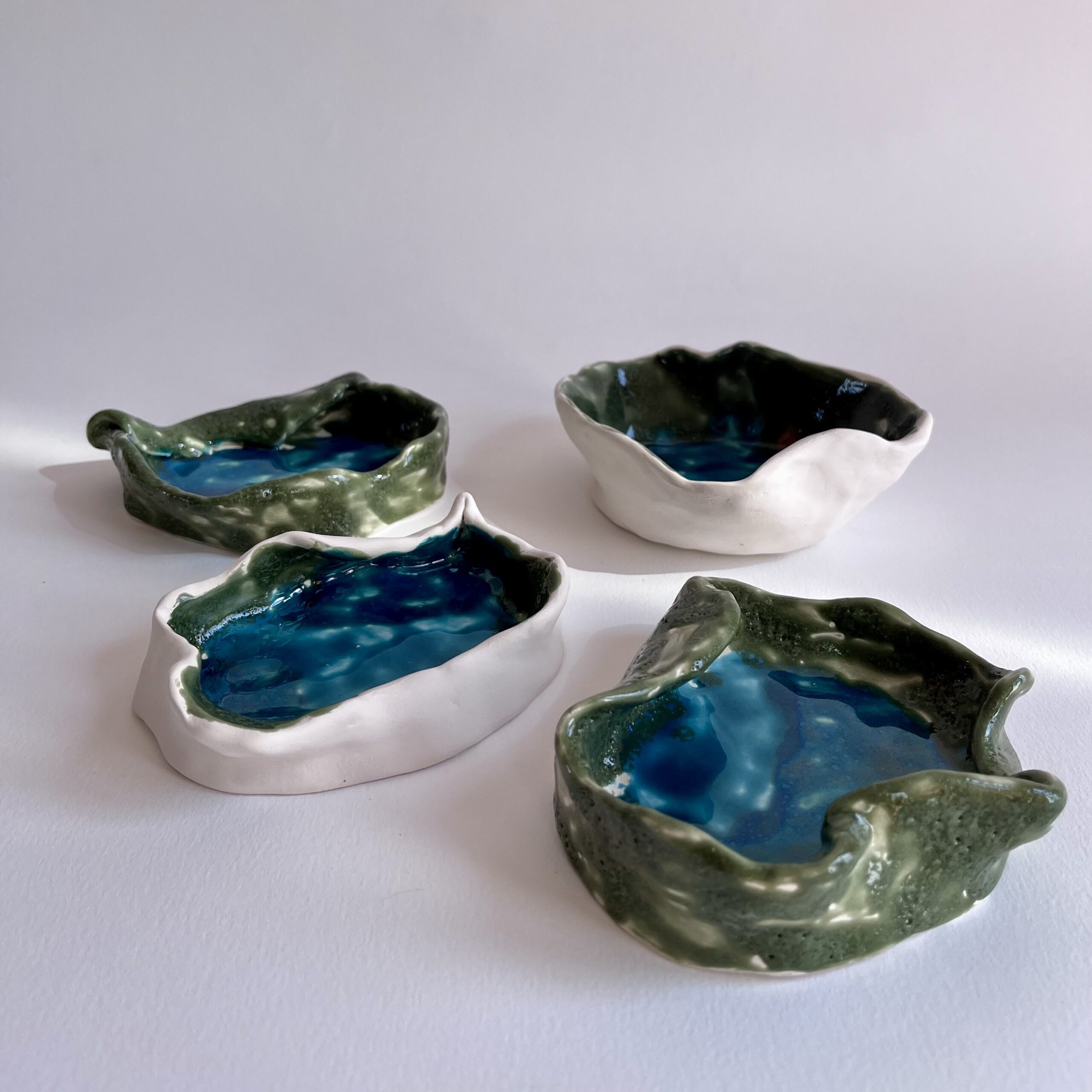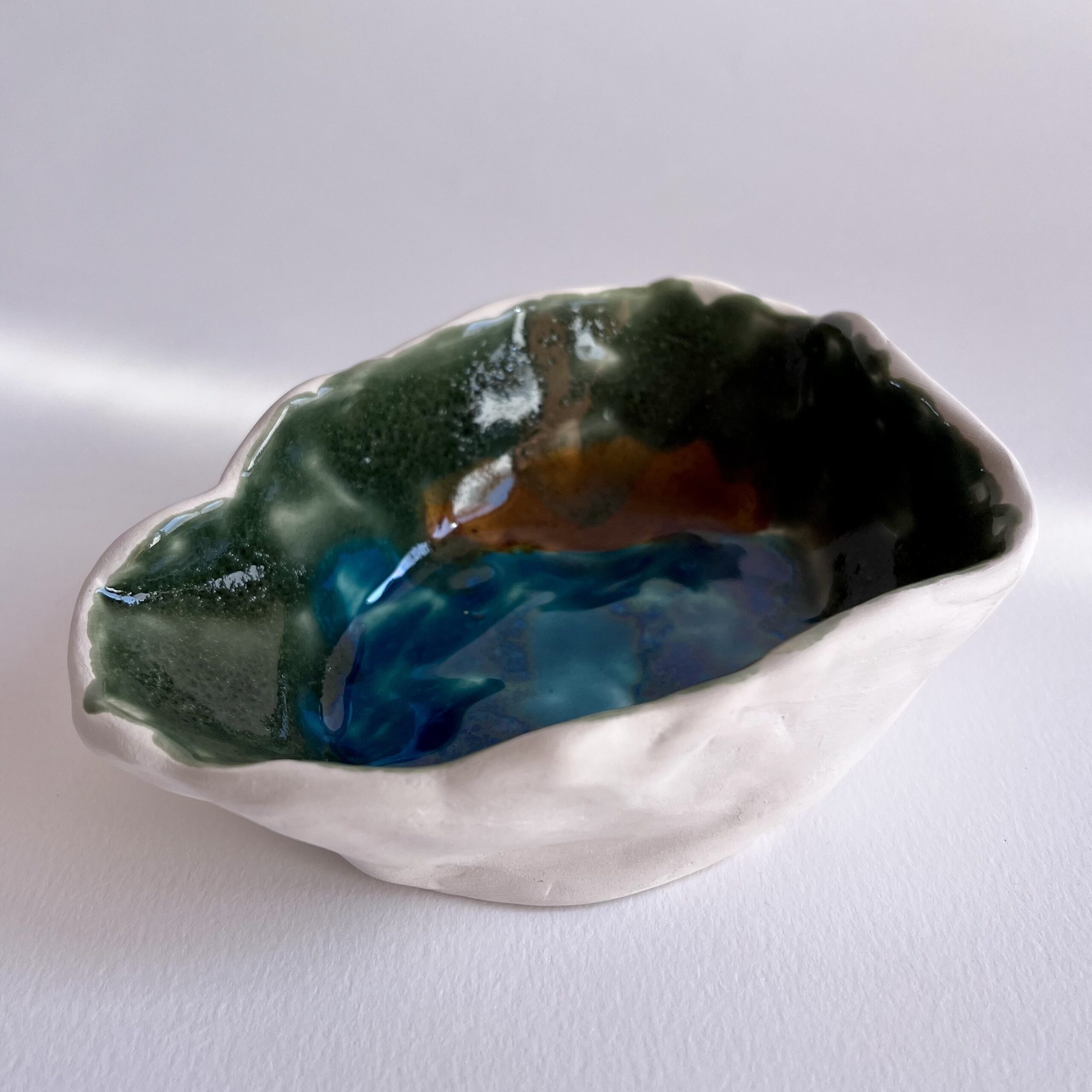 Laura Vitorino Rebelo (Funchal, 1985) vive e trabalha no Alentejo, Portugal. Laura é uma artista multidisciplinar cuja prática está profundamente enraizada na paisagem, no território e na experimentação material. É licenciada em Artes Visuais e mestre em Práticas Artísticas em Artes Visuais pela Universidade de Évora, sendo atualmente investigadora de doutoramento em História da Arte no Centro de História da Arte e Investigação Artística. Em 2019 e 2023, foi selecionada para integrar a publicação Portuguese Emerging Art, destacando a sua posição no panorama da prática artística contemporânea portuguesa. A sua prática desenvolve-se a partir da paisagem, do território e da experimentação material, através de processos lentos de observação e de fazer. Trabalhando com cerâmica, fotografia e vídeo, explora a paisagem enquanto experiência vivida e sensorial, moldada pela memória, pelo tempo e pelo lugar. If the Earth Wasn’t Round é uma coleção de peças cerâmicas em faiança, moldadas manualmente, sendo cada uma única. Inspiradas nas barragens do Alentejo, as obras traduzem as variações cromáticas e formais resultantes do encontro entre a água e a terra. O processo é intuitivo e aberto ao acaso, respeitando o comportamento natural do barro. Os óxidos naturais são aplicados manualmente, de forma pictórica, evocando os tons da terra e da água. Estas peças surgem como paisagens cerâmicas abstratas, expressando quietude, transformação e impermanência. Através de um saber-fazer lento, do uso de materiais naturais e de uma forte relação com o território, o trabalho de Laura conjuga autenticidade, sustentabilidade e expressão artística contemporânea. Laura expõe regularmente desde 2014. Entre as exposições individuais destacam-se Subtle Landscape (2019, Casa da Avenida, Setúbal), OffarqLisboa (2018, Pátria Interiores, Lisboa), There Are More Seas Than Roses, with Rare Exceptions (2018, Casa da Cultura, Comporta) e (Un)inhabited Landscapes (2017, Casa da Luz Museum, Funchal). Participou ainda em exposições coletivas internacionais como Exposed Opposites (Fórum Eugénio de Almeida, Évora), Rotterdam International Art Fair (Laurenskerk, Roterdão) e Périplos – Arte Portuguesa de Hoje (Centro de Arte Contemporáneo de Málaga). O seu trabalho integra coleções públicas e privadas, nomeadamente a Casa da Luz Museum (Portugal), a Coleção Luciano Benetton (Itália) e o Centro de Arte Contemporáneo de Málaga (Espanha).