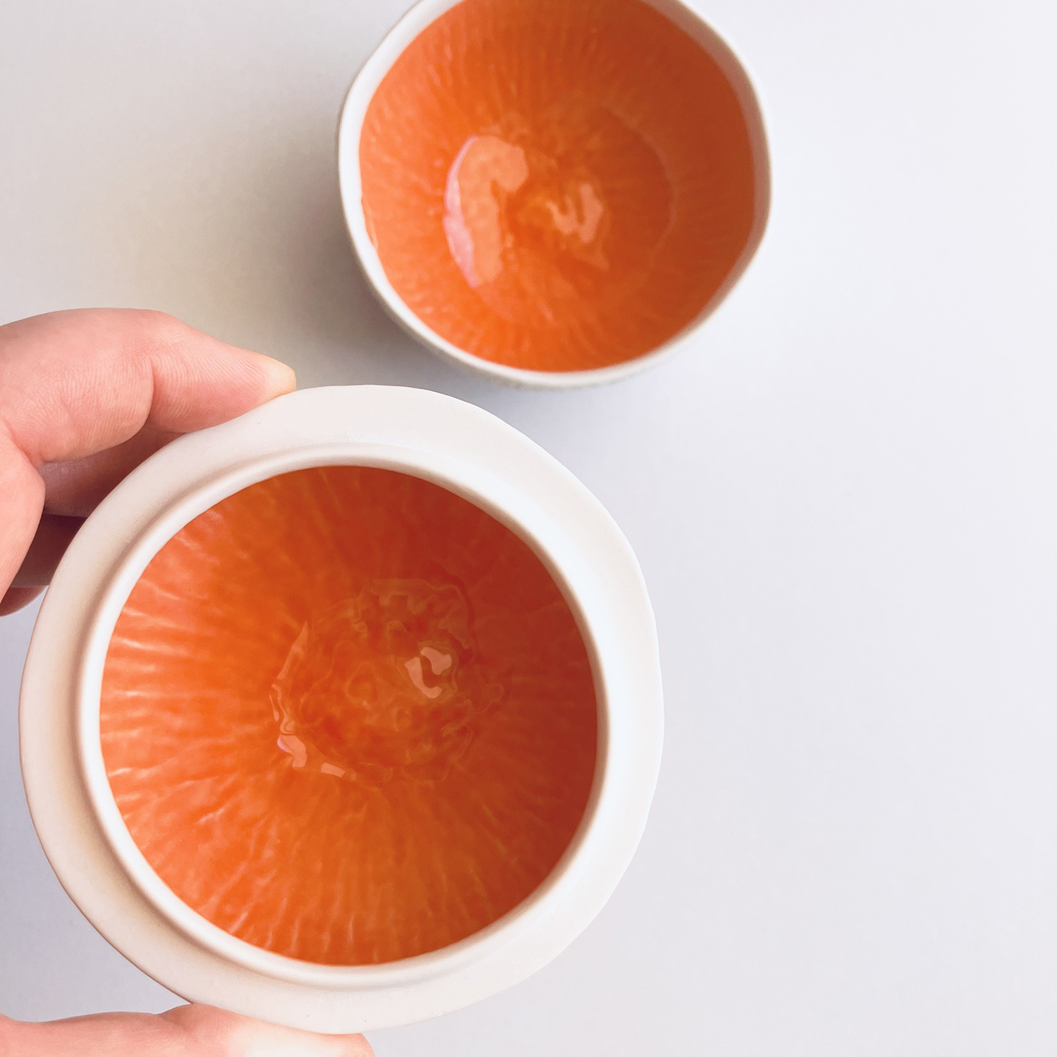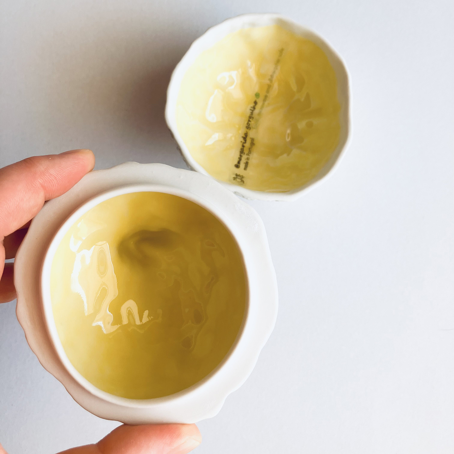 A paixão pela porcelana começou há 25 anos, durante o curso de Design – Tecnologias para a Cerâmica, na ESAD.CR, onde experimentou todas as matérias cerâmicas, até experimentar a porcelana pela primeira vez no 4º ano, a partir daí, passou a ser a sua matéria de eleição. Após a conclusão do curso, em Outubro de 2002, cria a sua marca com o seu próprio nome, Margarida Gorgulho, e inicia-se no mundo da Porcelana e da Natureza, a sua fonte de inspiração e apropriação. Os frutos e texturas que usa e o contraste entre o branco da porcelana no exterior das peças e o vidro colorido no interior das mesmas, define todo o seu trabalho, resultando numa colecção de peças elegantes que elevam o uso diário de objectos funcionais a uma experiência sensorial e poética. São produzidas por via líquida, através de moldes de gesso, com a porcelana de Limoges. No acabamento são lixadas, polidas e vidradas à mão. São decoradas com vidrados coloridos no seu interior. O exterior é sem vidrado tirando assim partido das propriedades da porcelana: cor, delicadeza, resistência, translucidez e impermeabilidade.